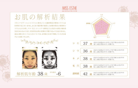 ※肌解析データはミスエステのセンターサーバーで一括管理されています。